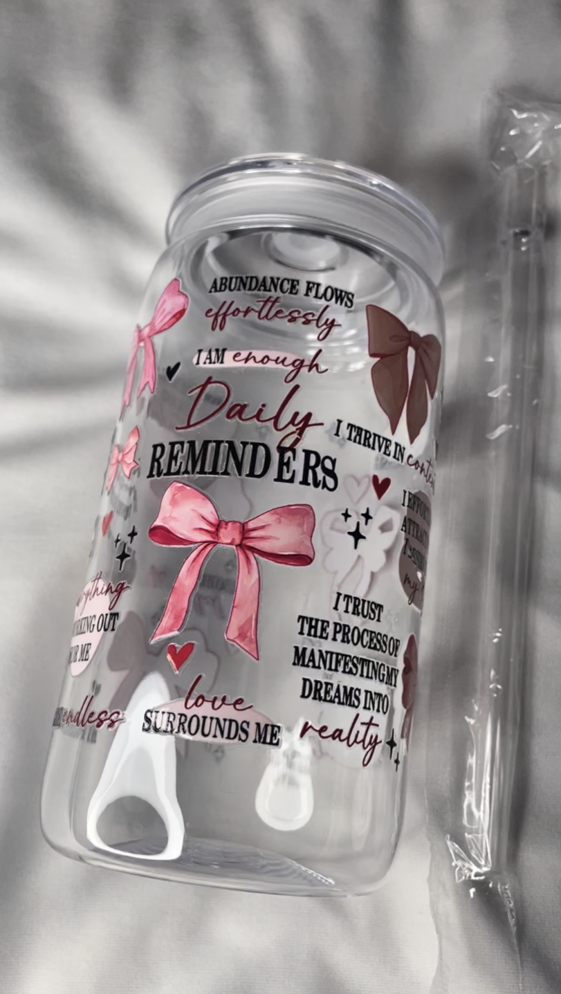 Affirmation Handmade 16oz Single Plastic Water Bottles with Straws & Lids - Durable, Reusable, Portable for Camping, Picnics, Parties, Holidays - Perfect for Iced Coffee, Gifts,Transparent Drinkware.