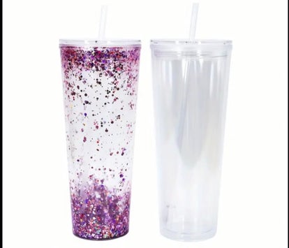 16oz Double-Wall Acrylic Plastic cup with Straws & Lids,Reusable, Portable, Leak-Proof Drink Containers for gifts,Iced Coffee,Party Drinkware,Beverage, Stylish Drinkware, Straw Included!